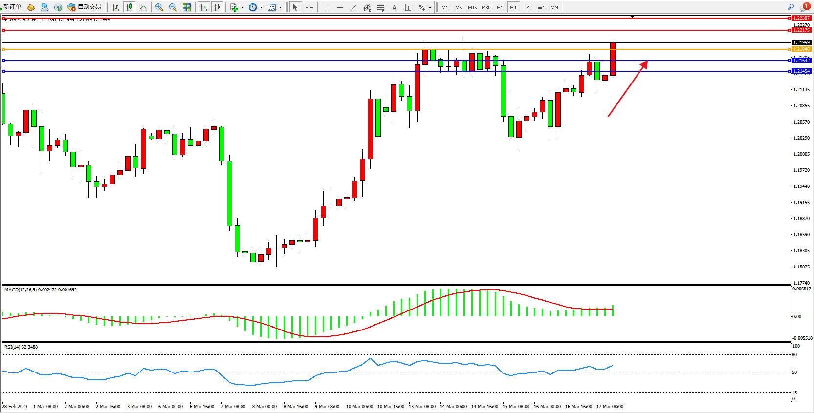 英镑美元GBPUSD ——4小时K线图显示: