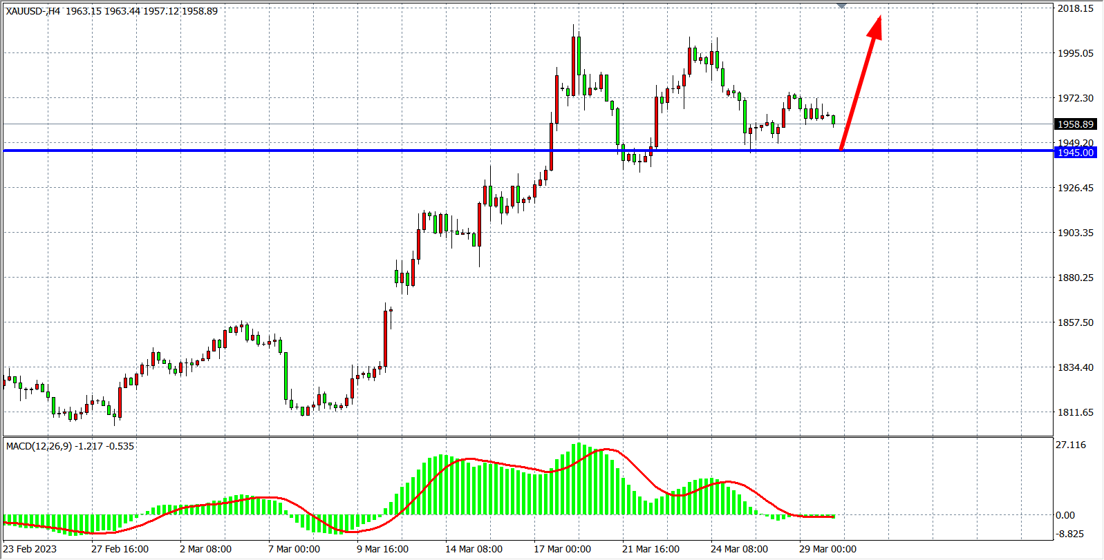 现货黄金XAUUSD 四小时图