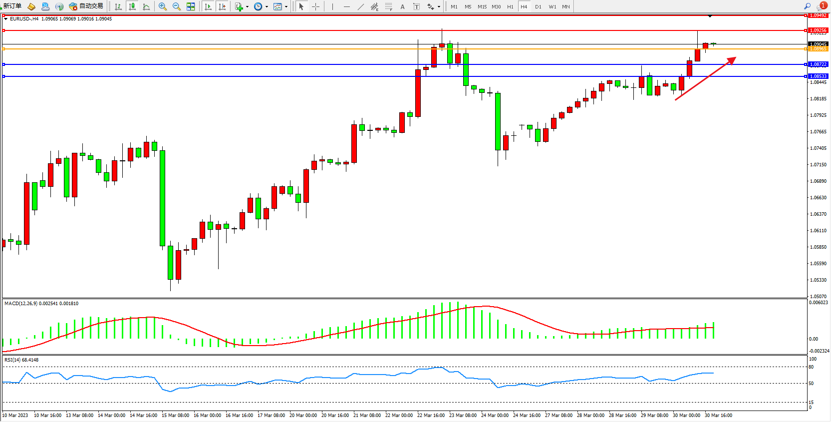 交易策略:1.08965上方看涨,目标1.09256  1.09492