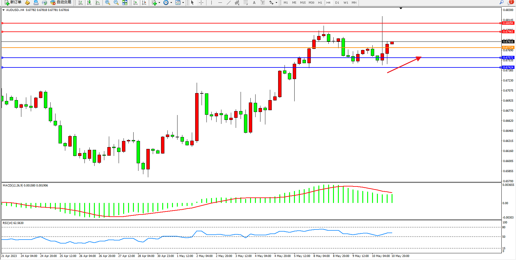 交易策略:0.67724上方看涨,目标0.67965  0.68094