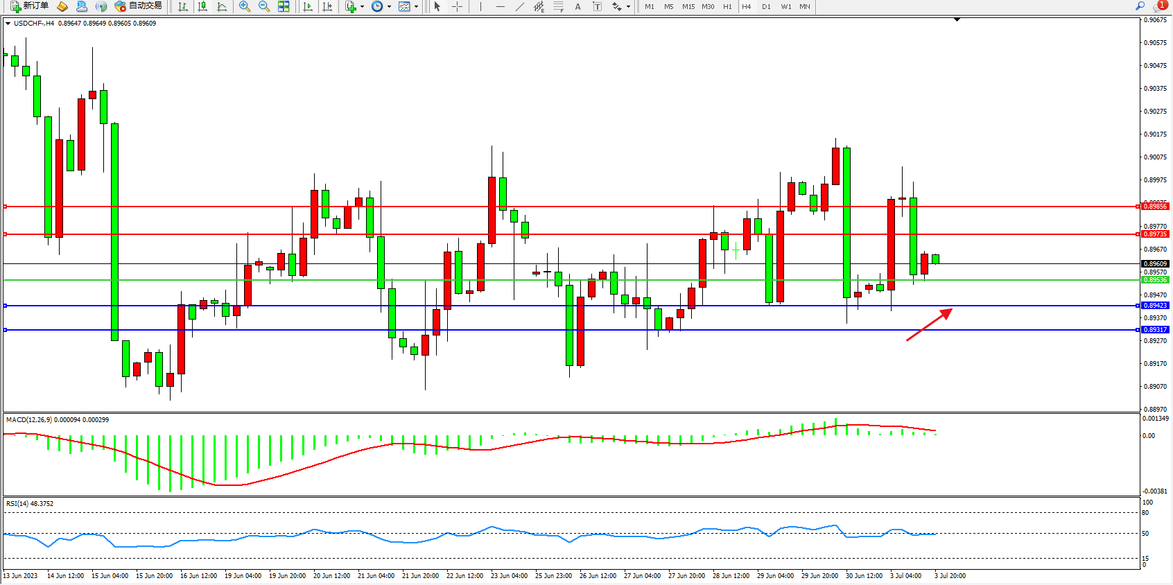 支撑位:0.89423 0.89317