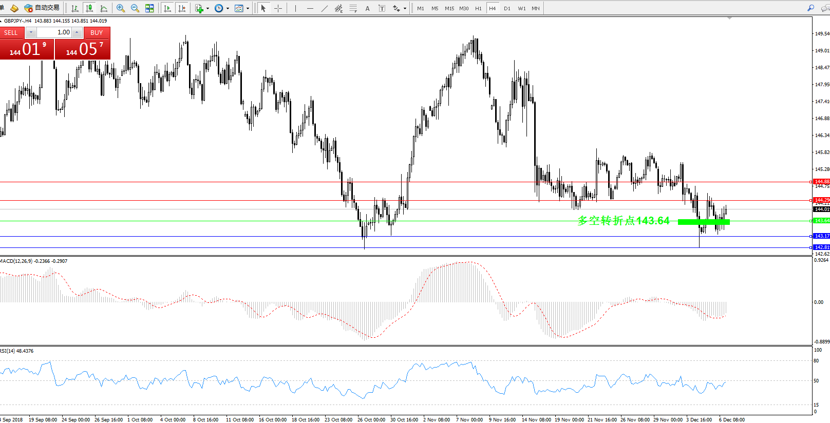 交易策略:143.64上方看涨,目标144.29、144.88