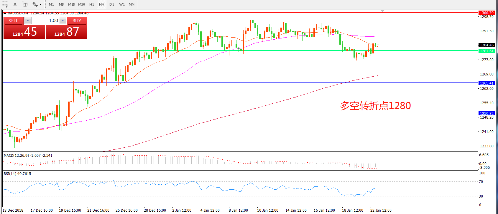 多空转折点:1280.00