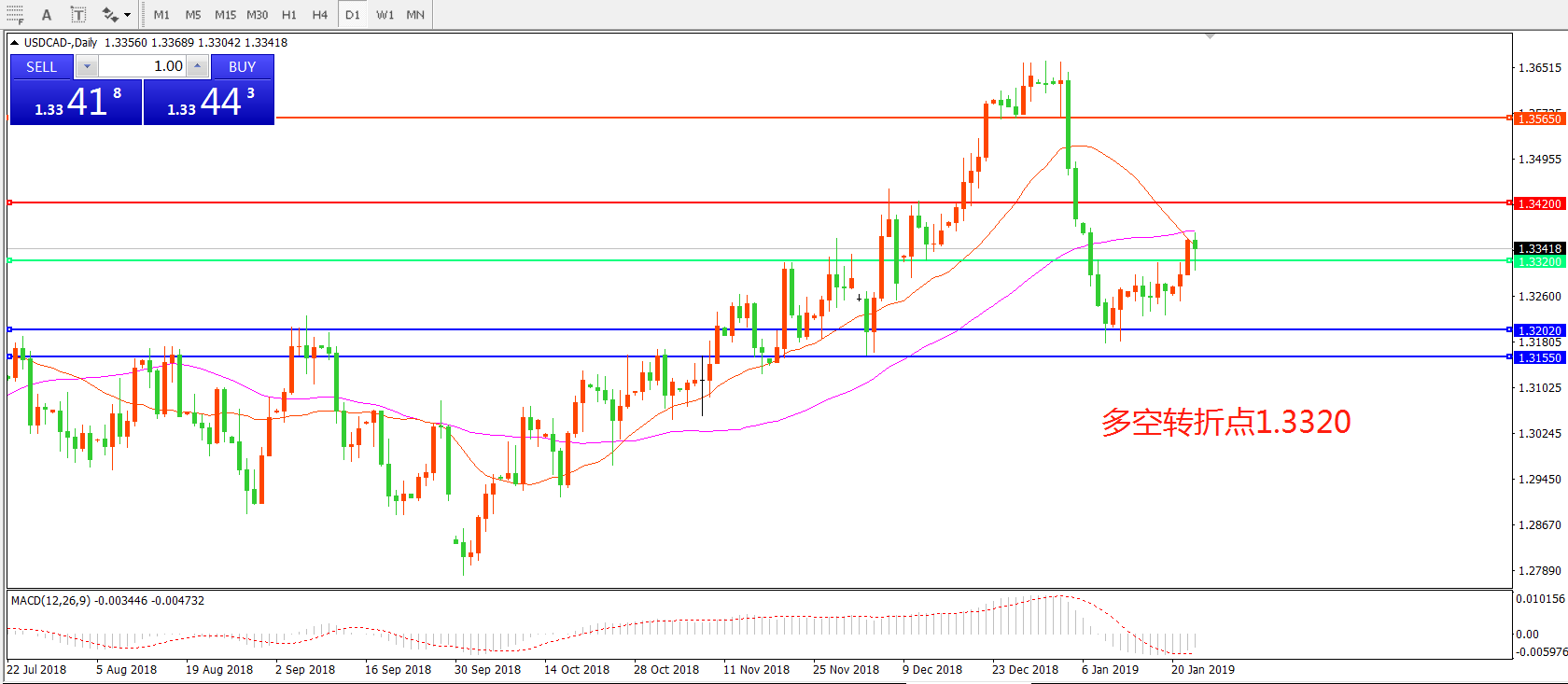 交易策略: 在1.3320之上,看涨,目标价位为1.3420,然后为1.3565。