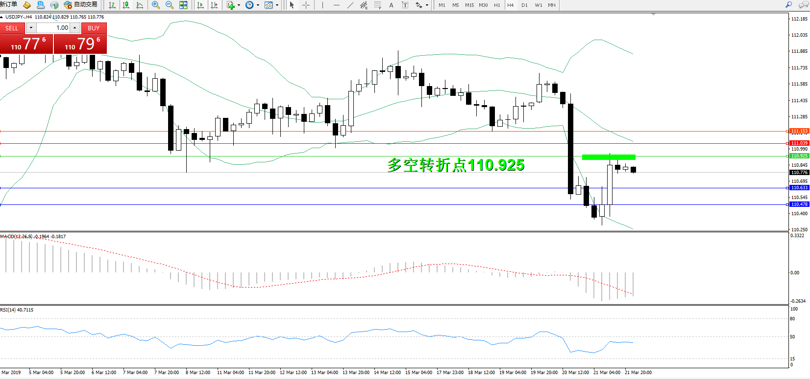 交易策略:110.925下方看跌,目标110.633、110.478