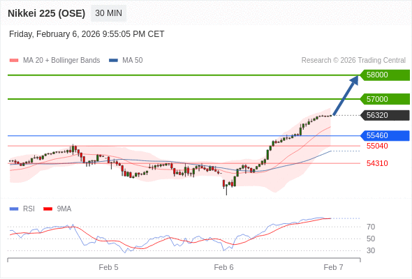 在 55460 之上,看涨,目标价位为 57000 ,然后为 58000 。