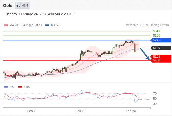 在 5245 之下,看跌,目标价位为 5125 ,然后为 5100 。