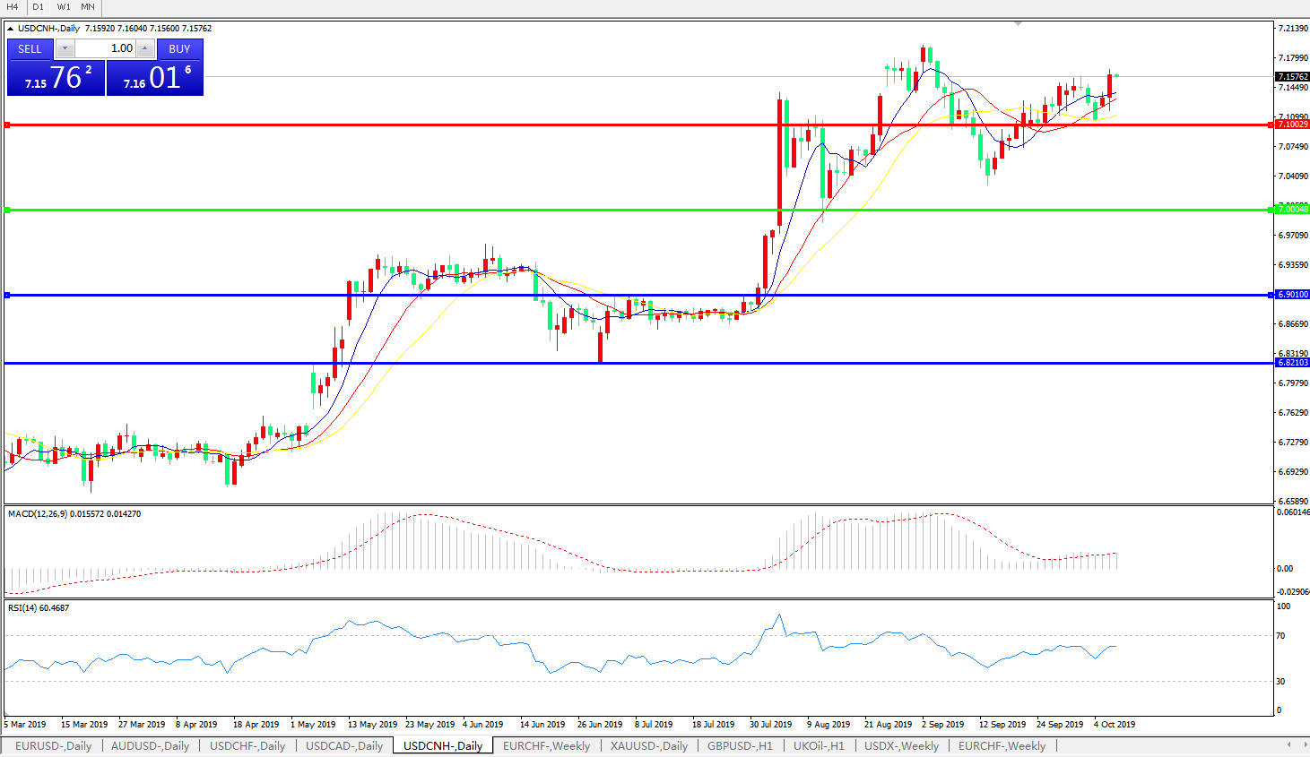 技术面简析:日图均线整体呈攻势,汇价站稳7.10关口后稳步上攻,MACD运行于0轴上方但量能未见放量,RSI小幅走升,预计短期汇价随贸易谈判有所反复但中期汇价大概率将下行,上方重点关注7.20-7.30区间的压制;中美贸易谈判再度开启,进展须持续关注。