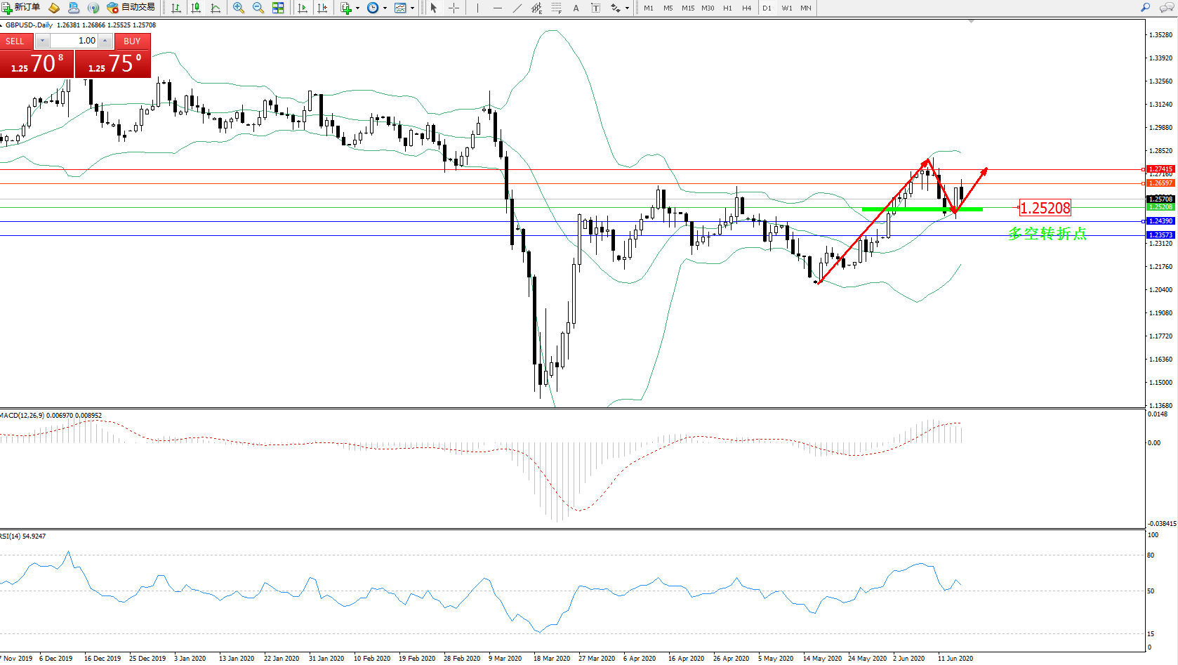 交易策略:1.25208上方看涨,目标1.265971.27415