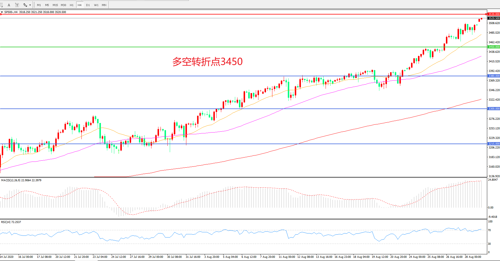 多空转折点:3450.00