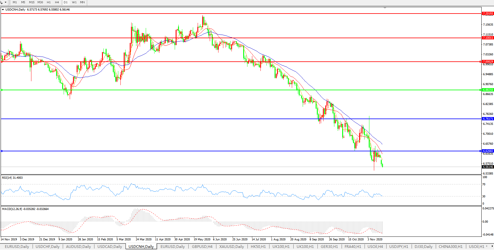 美元兑人民币USDCNH    日线图: