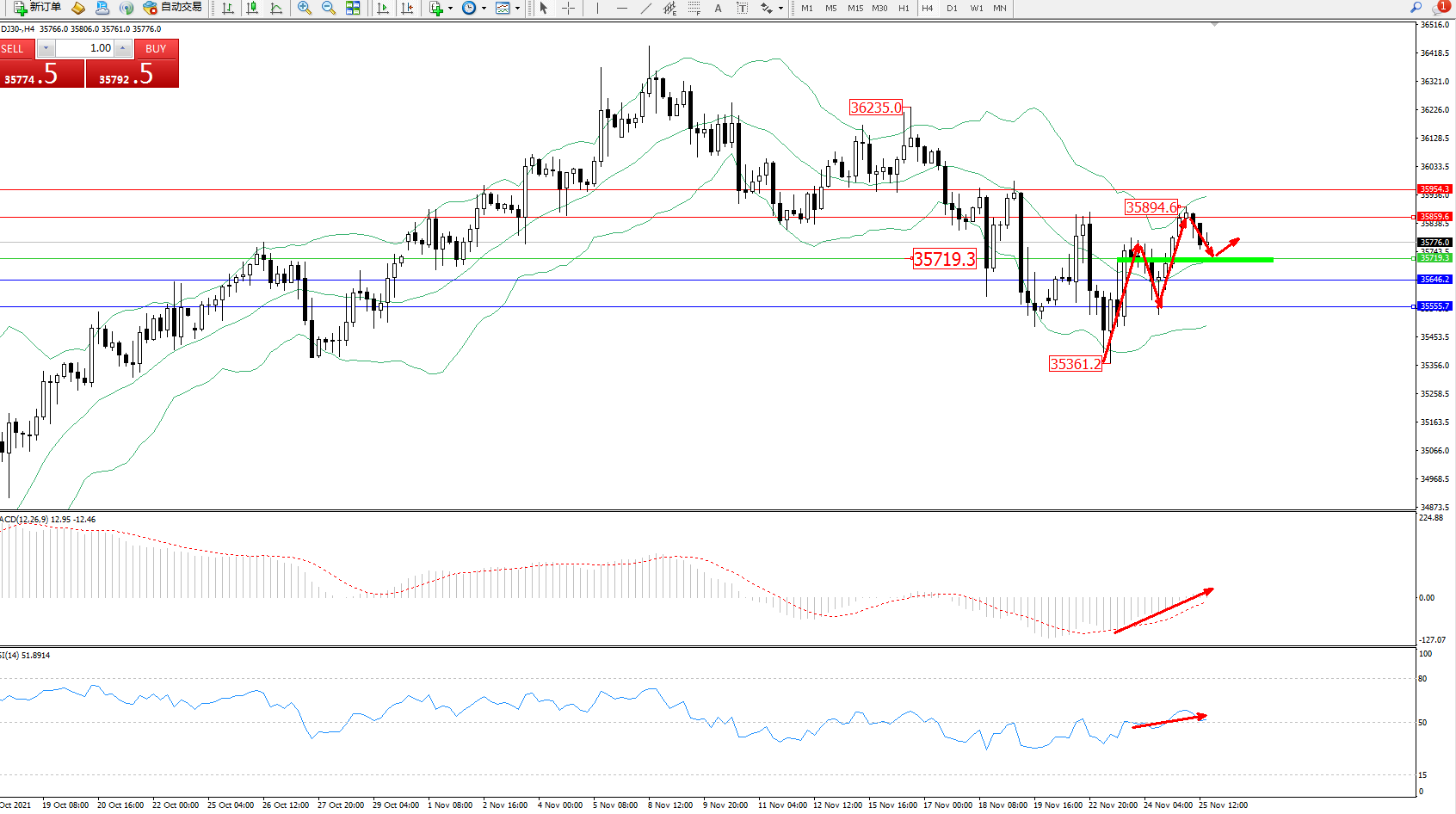 交易策略:35719上方看涨,目标35859、35954