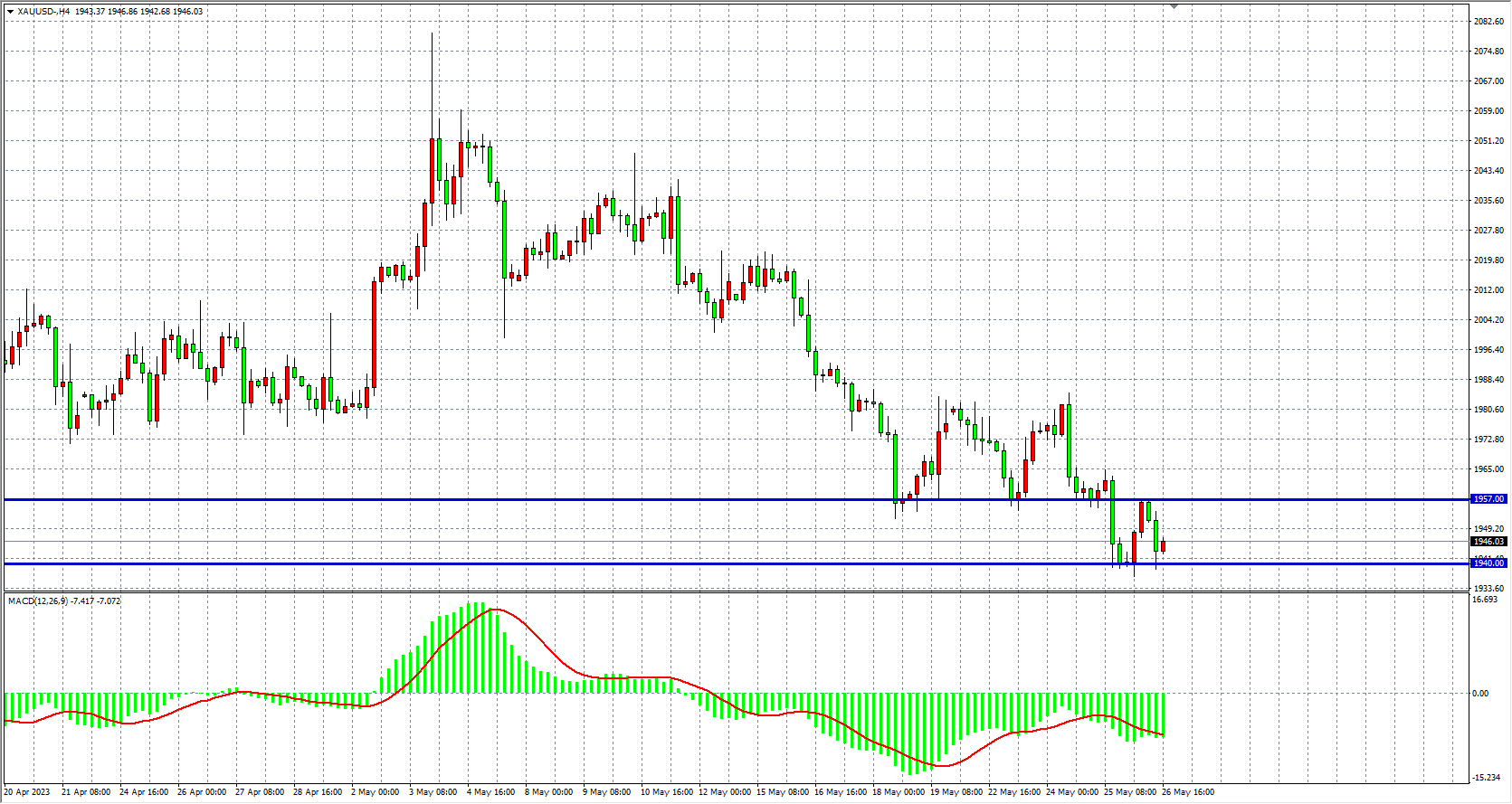 现货黄金XAUUSD 四小时图